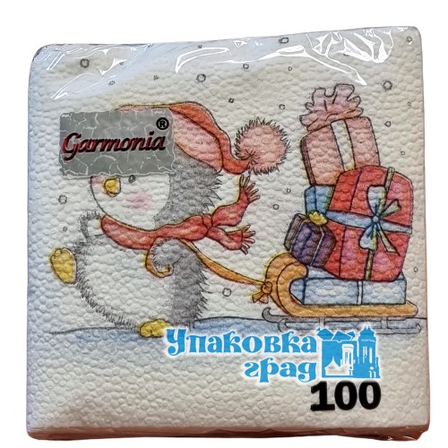 Салфетка 100л НГ 24*24см Снеговички п/п /40