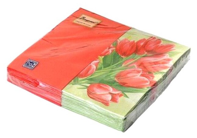 Салфетки 20л 33*33 2сл Тюльпаны на зеленом Де люкс /15
