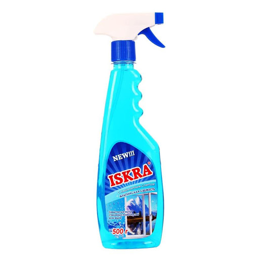 Средство для мытья стёкол «Искра» объёмом 500 мл с курком и нашатырным спиртом предназначено для удаления пыли, грязи и разводов с окон, зеркал, витрин, автомобильных стёкол, а также экранов телевизоров.