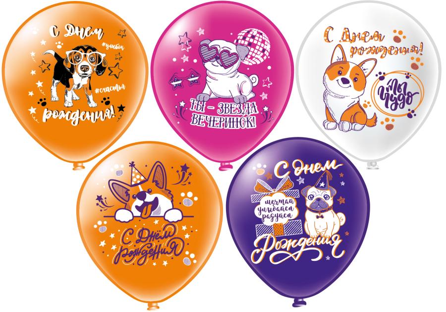 Шары 25шт/уп шелк рис.2ст.2цв.СБР! Собачки! 5дизайнов