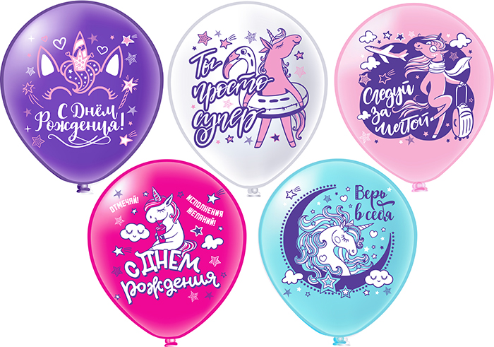 Шары 25шт/уп шелк рис.2ст.2цв.СДР! Единорожка! 5дизайнов