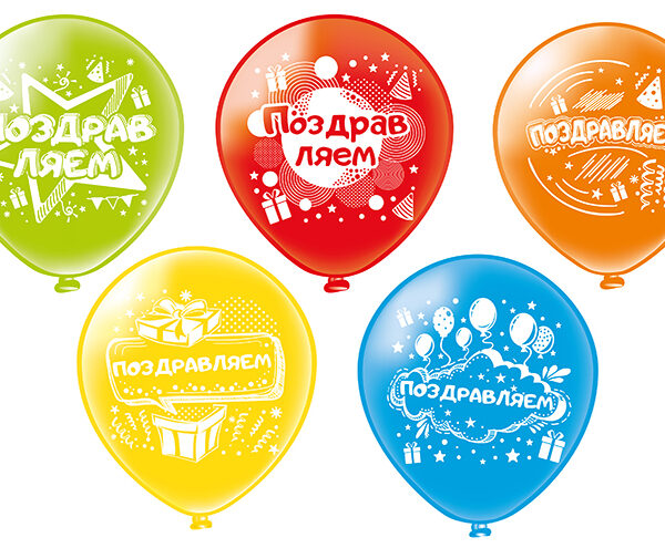 Шары 25шт/уп шелк рис.2ст..Поздравляем! 5дизайнов