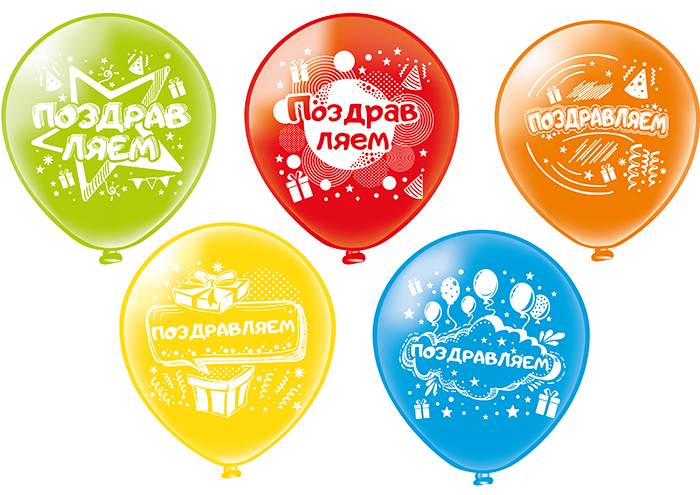 Шары 25шт/уп шелк рис.2ст. СДР! Поздравляем! 5дизайнов