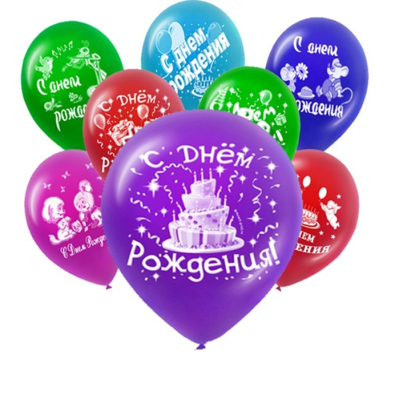 Шары 50шт/уп 12/30см шелк,рис С днем рождения