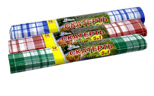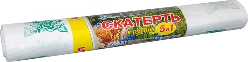 Скатерть одноразовая в рулоне. Изготовлена из полиэтилена, размер 110*180см, в рулоне 5 штук (разделяются по перфорации), плотность 35мкм. Станет отличным украшением для праздничного стола на любом мероприятии.