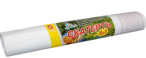 Скатерть одноразовая в рулоне. Изготовлена из полиэтилена, размер 110*120см, в рулоне 5 штук (разделяются по перфорации), плотность 35мкм. Станет отличным украшением для праздничного стола на любом мероприятии.