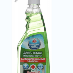 Средство для очистки стекол и поверхностей с антибактериальным эффектом действует сразу при нанесении на поверхность, придает поверхностям идеальную чистоту и блеск без разводов, имеет приятный запах.