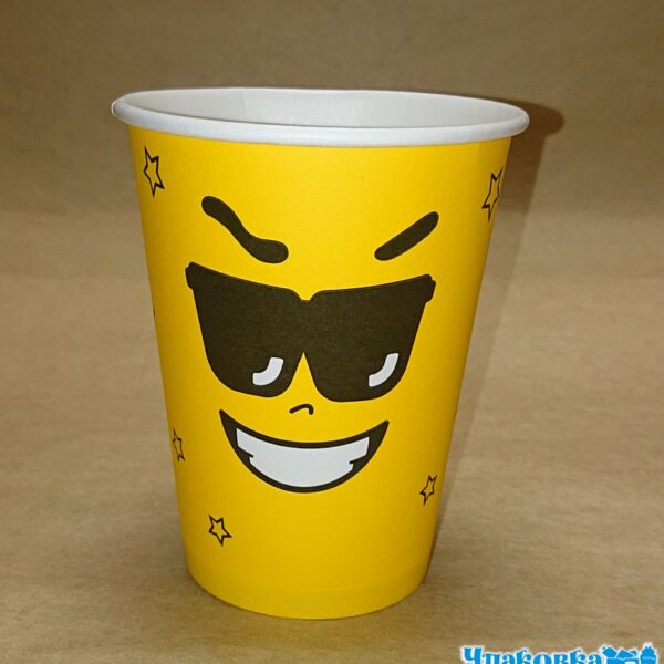 Стакан бумажный 350мл Д-90 Желтый смайл дгор 50шт*20уп/1000