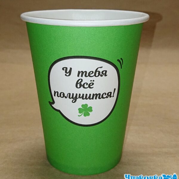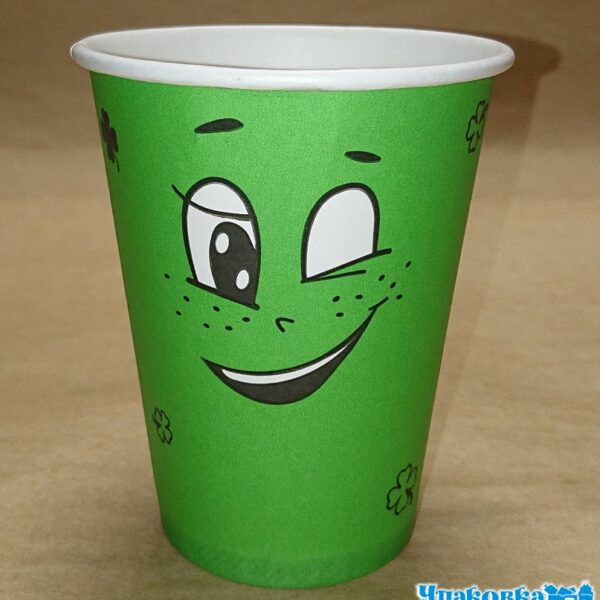 Стакан бумажный 350мл Д-90 Смайл зеленый дгор 50шт*20уп/1000