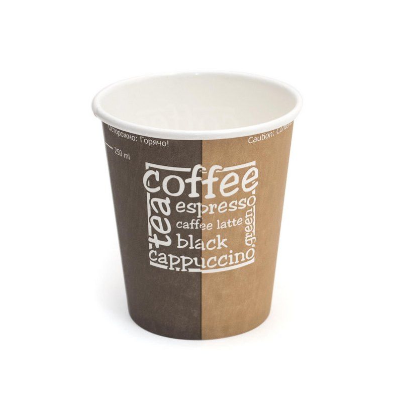 Картонный стакан 250мл, диаметр 80мм, идеален для кофе, чая, лимонада и других горячих и холодных напитков. Может использоваться в кафе, в походах, на пикниках, на природе для семейного отдыха, на рыбалке и охоте.