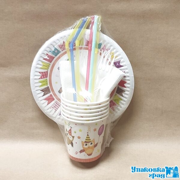 Набор одноразовой картонной посуды Детский на 6 персон. В набор входят: тарелки Д-180мм, стаканы, вилки, трубочки для коктейля, салфетки. Экологичная посуда добавит настроение торжеству, украсит фуршет, выездное мероприятие, детский праздник.