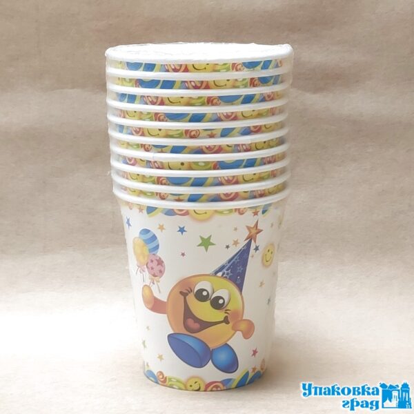 Стакан бумажный 250мл С Днем рождения Улыбки 6шт МИК