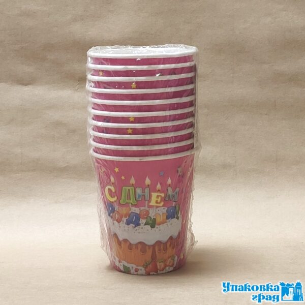 Стакан бумажный 250мл С ДР Торт клубника 10шт/960 1227845Д-18