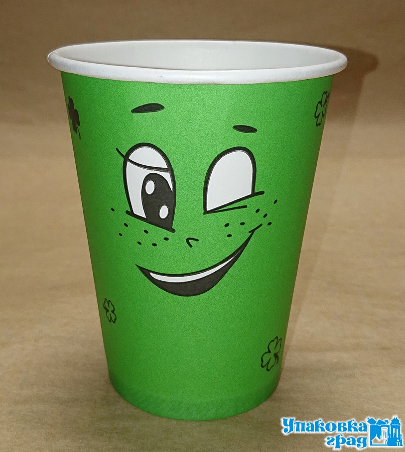 Стакан бумажный 350мл Д-90 Смайл зеленый дгор 50шт*20уп/1000