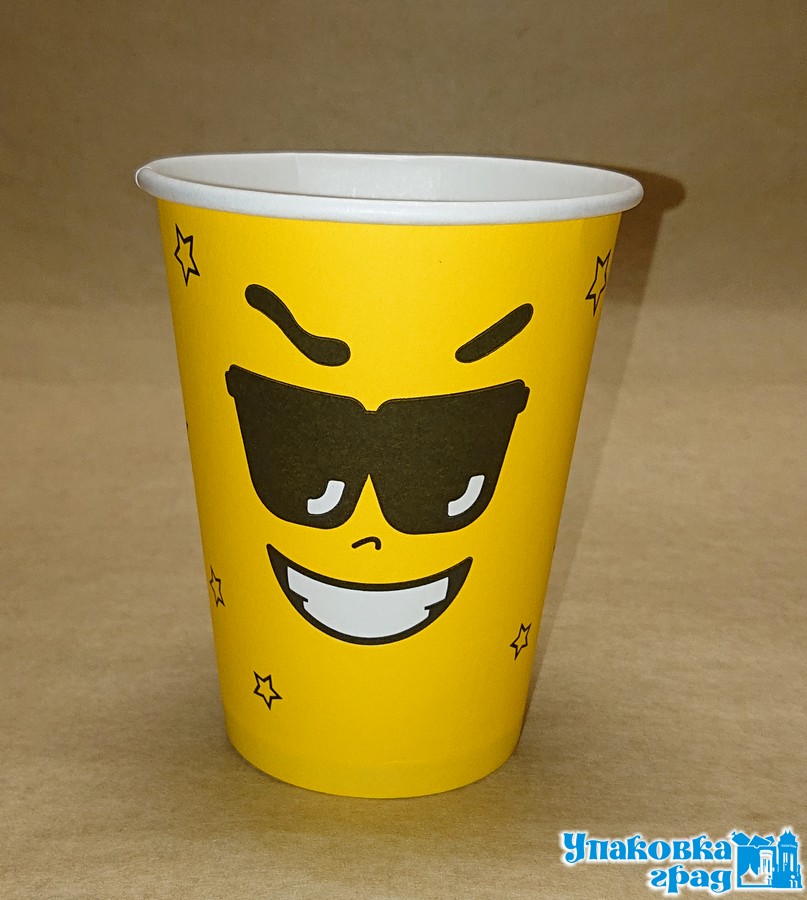 Стакан бумажный 350мл Д-90 Желтый смайл дгор 50шт*20уп/1000