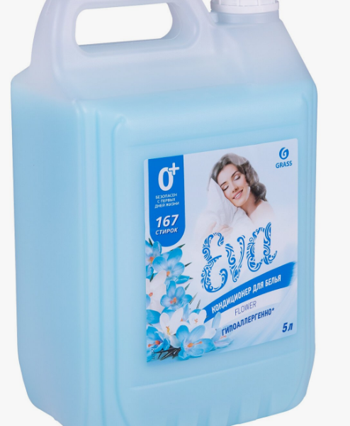 Кондиционер для белья EVA Лаванда 5л. Снимает статическое напряжение, облегчает глажение, придает белью мягкость и длительный приятный аромат.