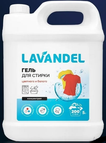 Гель для стирки белого и цветного белья Lavandel 5л КОНЦЕНТРАТ эффективно удаляет пятна и запахи, бережно воздействует на ткань. Предназначен для стирки и замачивания изделий из хлопчатобумажных, льняных,синтетических и смешанных тканей в стиральных машинах любого типа и ручной стирки в воде любой жесткости.