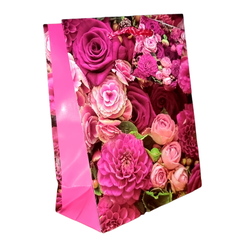 Сумка бум 20*25+10см золотое тис.Цветы 4диз.20шт/уп