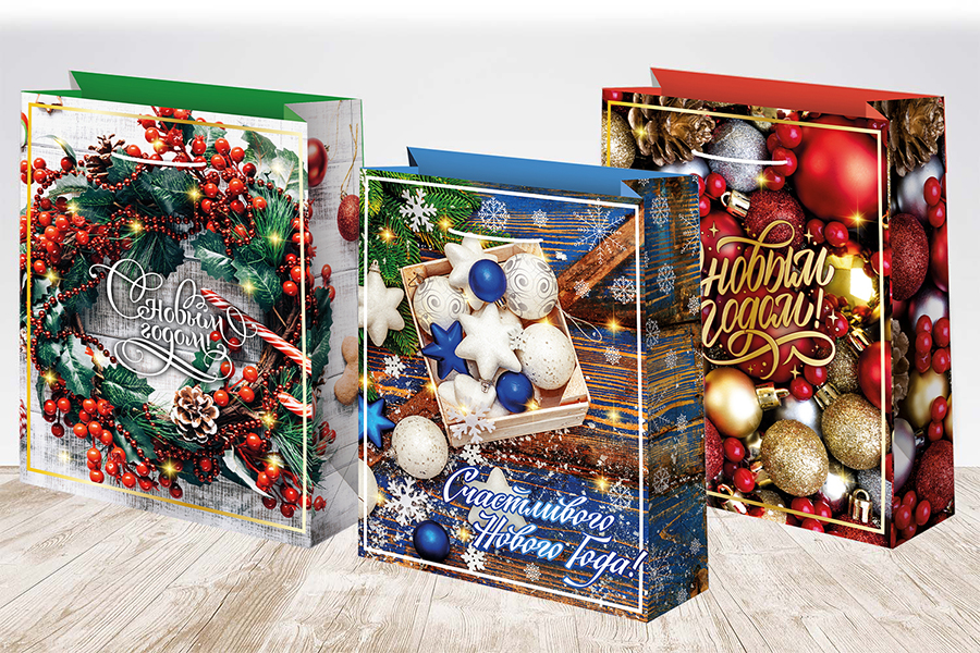 Сумка бум НГ 22*31+10см пакет лам матовый микс 12шт МК