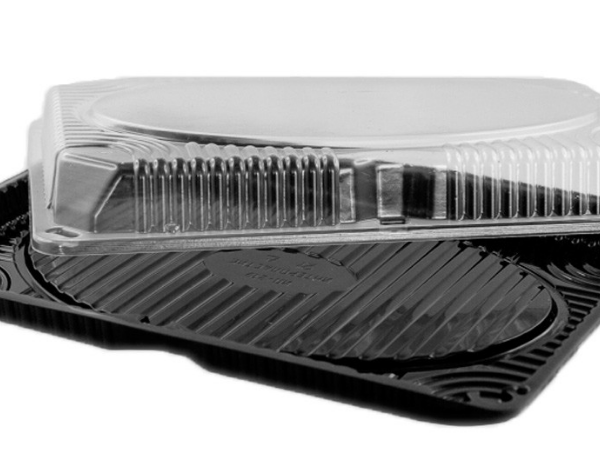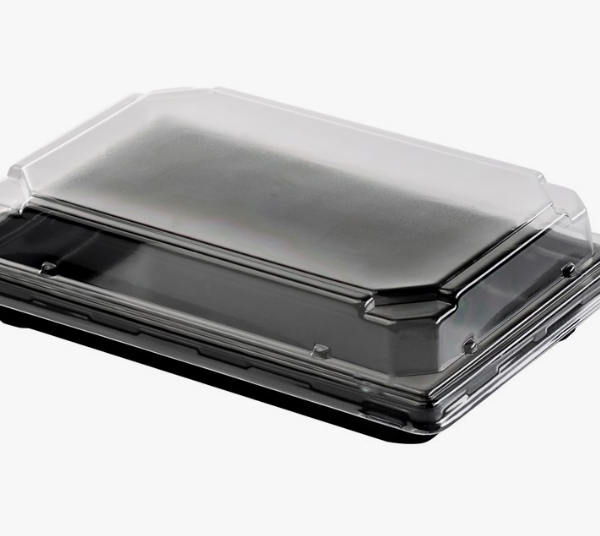 Контейнер СП-25 используется в качестве упаковки для суши и роллов, также подходит для фасовки восточных сладостей, готовой кулинарии. Изготовлен из ПЭТ черного цвета. Размер 242х168х30 мм.