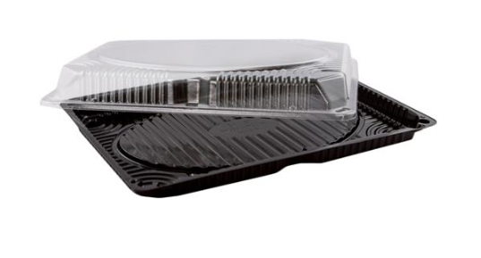 Контейнер СП-25 используется в качестве упаковки для суши и роллов, также подходит для фасовки восточных сладостей, готовой кулинарии. Изготовлен из ПЭТ черного цвета. Размер 242х168х30 мм.
