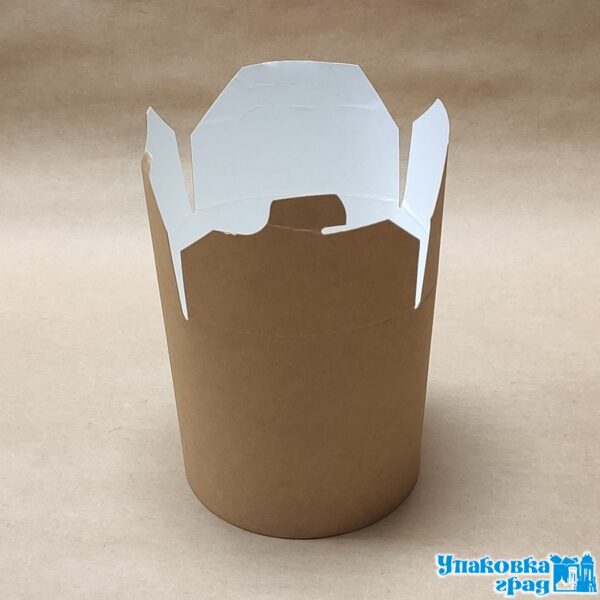 Контейнер бумажны, объем 450мл, ЭКО China Pack можно использовать под лапшу wok, рис, пельмени, вареники. Изготовлен из влагожироустойчивого картона. Контейнер пригоден для разогревания в микроволновой печи. В коробе 500 шт.