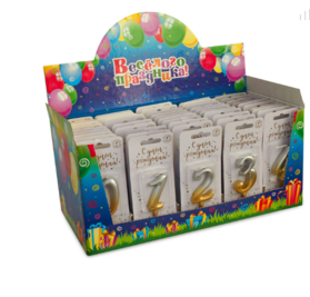 Шоу-бокс со свечами (цифры) золото-серебро 50шт/уп