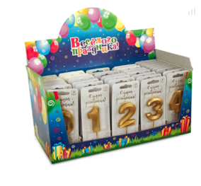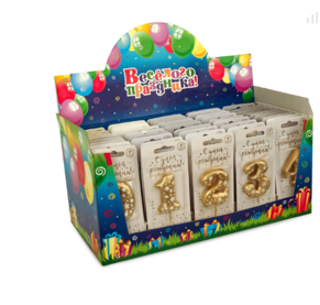 Шоу-бокс со свечами (цифры) “золотые витые” 50шт/уп