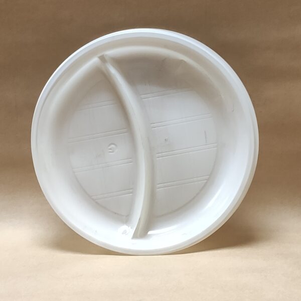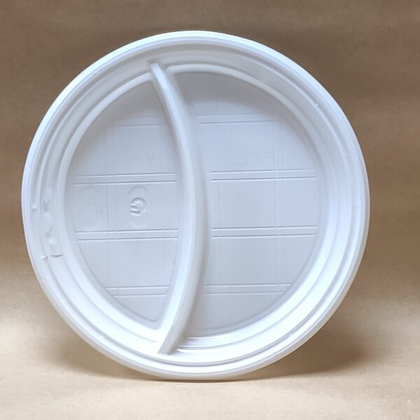 Тарелка пластиковая одноразовая 2-х секционная, диаметр 205мм, изготовлена из полистирола. Предназначена для холодных пищевых продуктов. Широко применяется в сфере быстрого питания, на выездных мероприятиях. Продается упаковкой 100 штук.