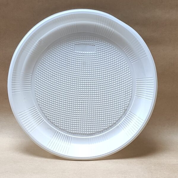 Тарелка пластиковая одноразовая, диаметр 220мм, изготовлена из полистирола. Предназначена для холодных и горячих пищевых продуктов. Широко применяется в сфере быстрого питания, на выездных мероприятиях. Продается упаковкой 100 штук.