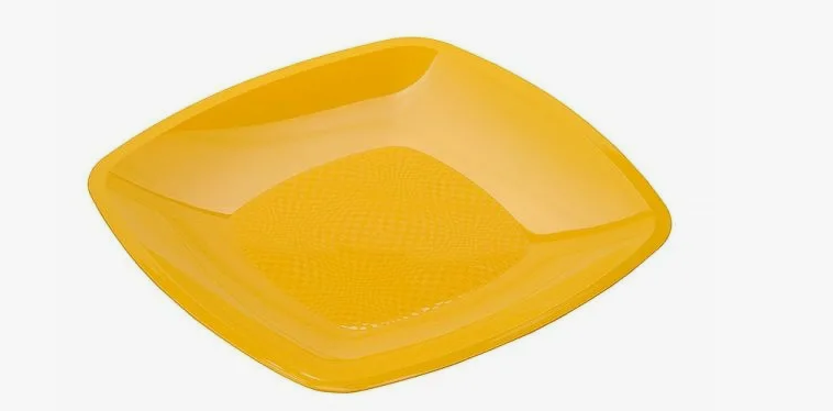 Тарелка одноразовая, мелкая, желтого цвета, изготовлена из полипропилена, размер 230×230 мм, в упаковке 6 штуки. Прекрасно подойдет для детских праздников, вечеринок, корпоративных мероприятий, пикников.