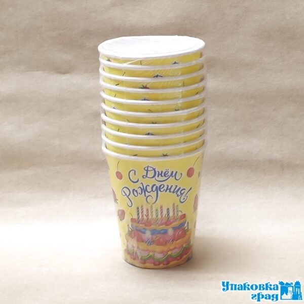 Стакан бумажный 250мл С ДР Поздравляем 10/480 2370457