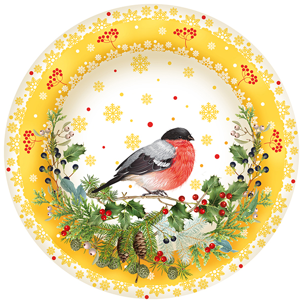 Тарелка НГ Д-230мм картон Птички 6шт /55