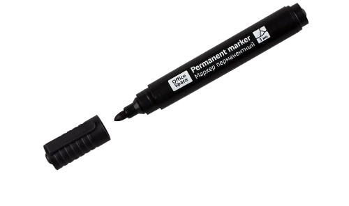 Перманентный маркер OfficeSpace чёрного цвета с толщиной линии 3 мм предназначен для письма на различных поверхностях. Подходит для письма на бумаге, дереве, стекле, ткани, металле и других поверхностях.