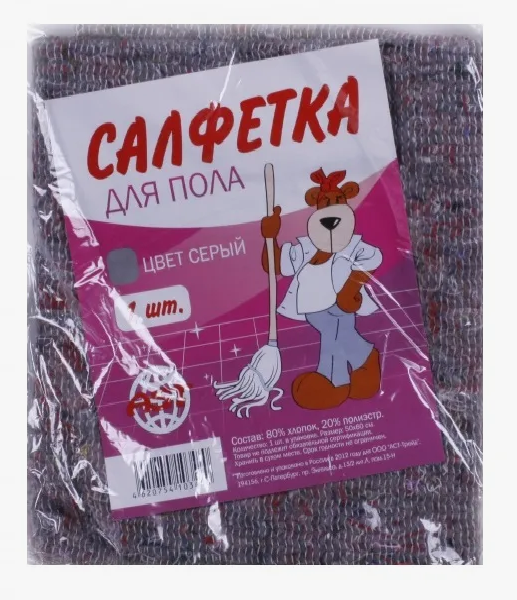 Тряпку для пола размером 50×60 см из вискозы в индивидуальной упаковке используют для уборки помещений, мытья полов и протирания поверхностей.