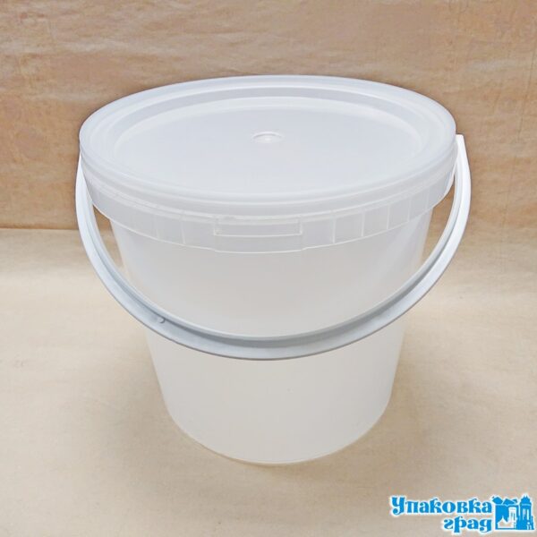 Ведро пищевое круглое с крышкой, ручкой и к/з. Состав: ПП. Цвет прозрачный. Вместимость, объем: 10 л.