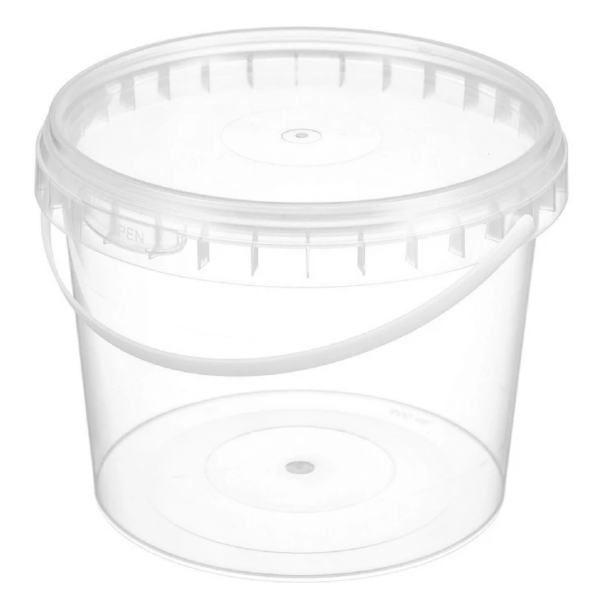 Ведро пищевое круглое с крышкой, ручкой и к/з. Состав: ПП. Цвет прозрачный. Вместимость, объем: 1 л.