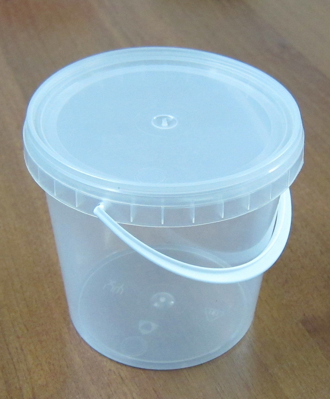 Ведро пищевое круглое с крышкой, ручкой и к/з. Состав: ПП. Цвет прозрачный. Вместимость, объем: 1 л.