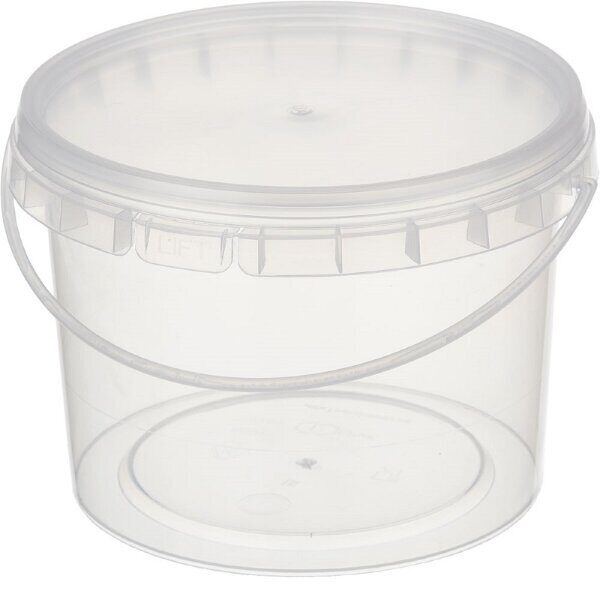 Ведро пищевое круглое с крышкой, ручкой и к/з. Состав: ПП. Цвет прозрачный. Вместимость, объем: 1 л.