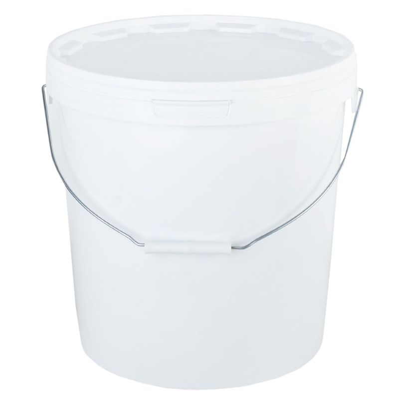 Ведро пищевое круглое с крышкой, ручкой и к/з. Состав: ПП. Цвет белый. Вместимость, объем: 20 л.
