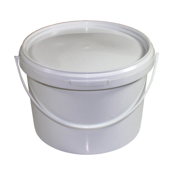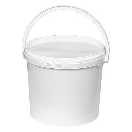 Ведро пищевое круглое с крышкой, ручкой и к/з. Состав: ПП. Цвет белый. Вместимость, объем: 5 л.