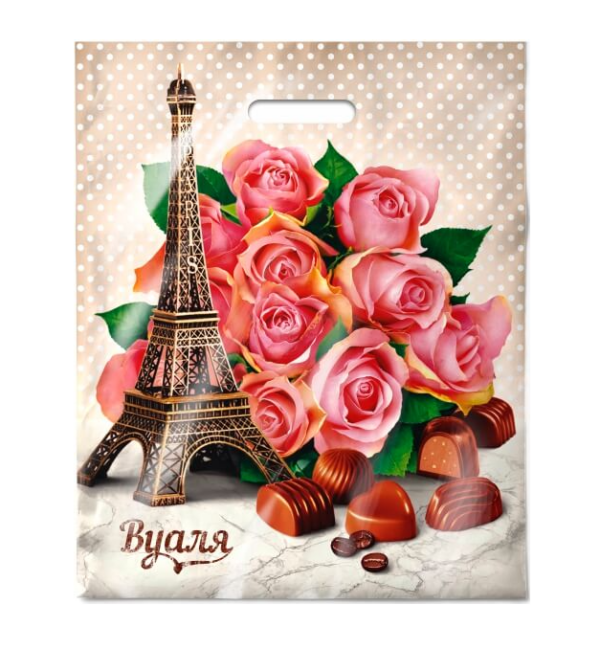 Пакет с вырубной ручкой, размер 31*40см, плотность 60мк. Пакет служит для упаковки небольших подарков, предметов одежды, продуктов. Продается по 50 штук.