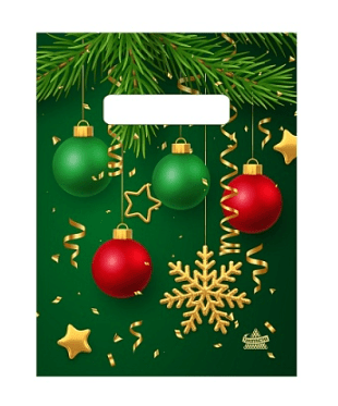 Новогодний пакет с вырубной ручкой, размер 19*25см, плотность 30мк. Пакет служит для упаковки косметических средств, бижутерии, небольших подарков, игрушек. Продается по 100 штук.