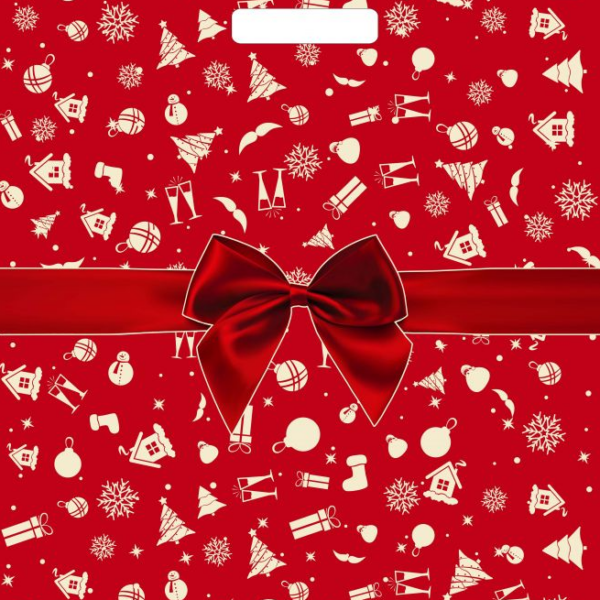 Новогодний пакет с вырубной ручкой, размер 40*47см, плотность 45мк. Пакет служит для упаковки косметических средств, подарков, игрушек. Продается по 50 штук.
