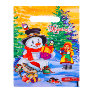 Новогодний пакет с вырубной ручкой, размер 20*30см, плотность 30мк. Пакет служит для упаковки косметических средств, бижутерии, небольших подарков, игрушек.