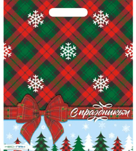 Новогодний пакет с вырубной ручкой, размер 38*45см, плотность 60мк. Пакет служит для упаковки косметических средств, небольших подарков, игрушек. Продается по 50 штук.