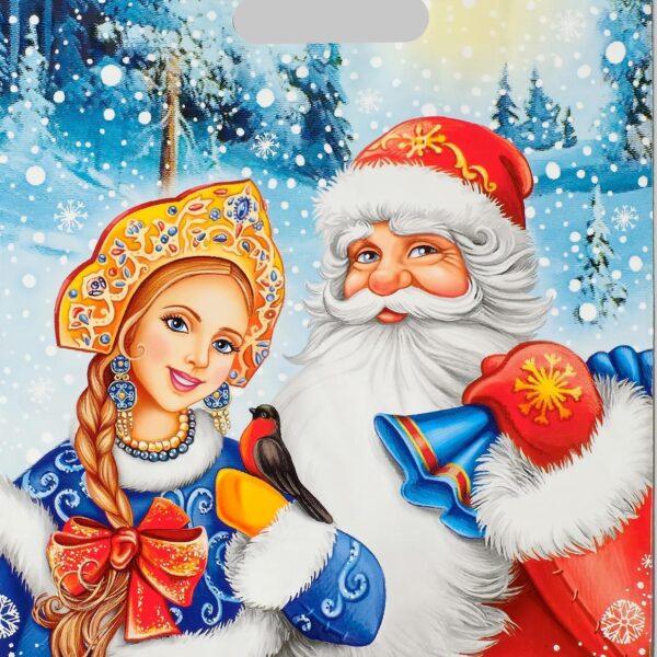 Новогодний пакет с вырубной ручкой, размер 40*47см, плотность 45мк. Пакет служит для упаковки косметических средств, подарков, игрушек. Продается по 50 штук.