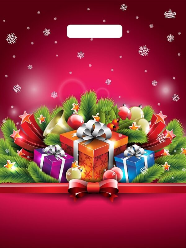 Новогодний пакет с вырубной ручкой, размер 31*40см, плотность 60мк. Пакет служит для упаковки косметических средств, бижутерии, небольших подарков, игрушек. Продается по 50 штук.