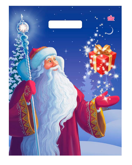 Новогодний пакет с вырубной ручкой, размер 31*40см, плотность 60мк. Пакет служит для упаковки косметических средств, небольших подарков, игрушек. Продается по 50 штук.