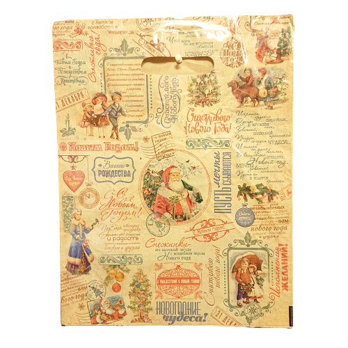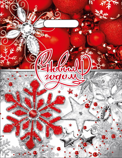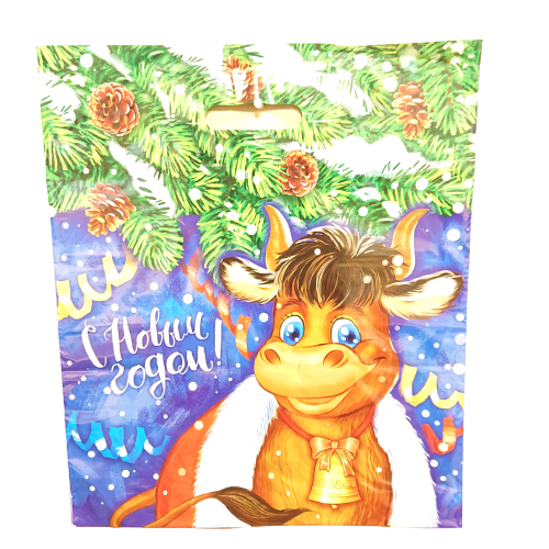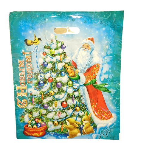 Новогодний пакет с вырубной ручкой, размер 40*47см, плотность 45мк. Пакет служит для упаковки косметических средств, подарков, игрушек. Продается по 50 штук.
